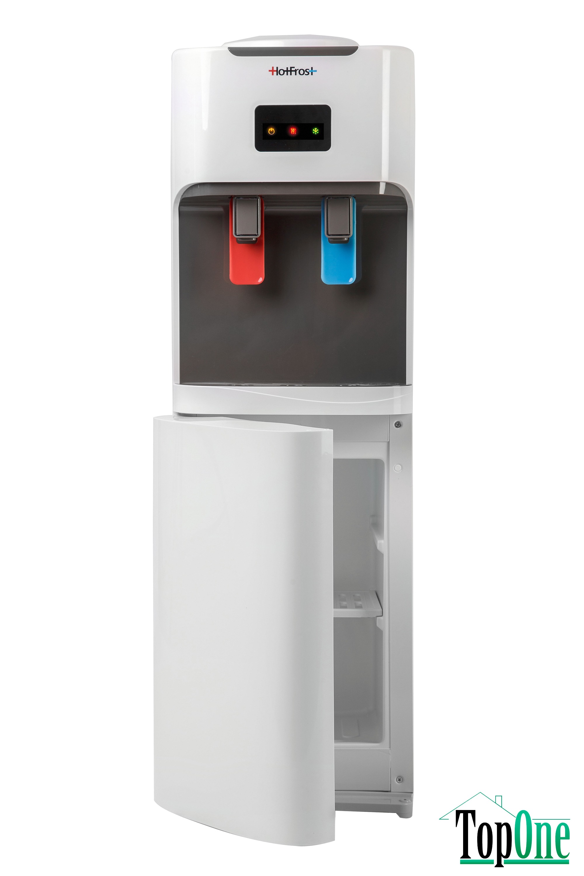 Приємним бонусом до ряду переваг цього кулера стане розміщена в нижній частині шафка, в якій можна зберігати чай, каву, цукор або одноразовий посуд.
