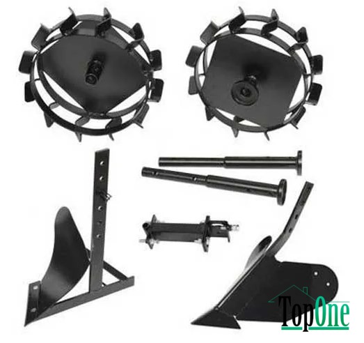 Комплект навісного обладнання Hyundai S 800 значною мірою розширить можливості культиватора, роблячи його багатофункціональним. Встановивши навісне обладнання, можна якісно доглядати земельну ділянку землі: підгортати, орати, культивувати, викопувати, нарізати борозни. В комплект входить: колеса ґрунтозачепи, зчіпка, плуг окучник, плуг розпашник, подовжувачі для ґрунтозачепів. Зчіпка – механізм, за допомогою якого можна приєднати навісне обладнання до культиватора. Колеса-грунтозачепи, збільшують зчеплення пристрою, навіть з пухким ґрунтом.Підгортальник, призначений, для підгортання рослин, з усіх боків, для збереження в коренеплодах вологи. Розорник, ефективно орає ґрунт. Даний комплект обладнання виконаний з високоякісної сталі, яка не піддається корозії. З цим набором можна значно заощадити час і сили по догляду за сільськогосподарськими культурами.