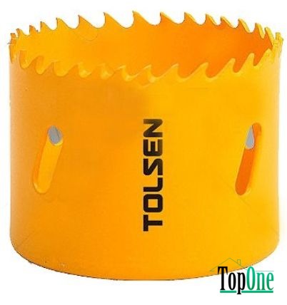 Коронка біметалічна TOLSEN 35 мм (75735) використовується для різання перфораторами, свердлами, ручними дрелями та верстатами кольорових металів, алюмінію, заліза, композитних плит, залізобетонних виробів та багатьох інших видів матеріалу. Виготовлена з високолегованої швидкорізальної сталі з додаванням кобальту (сталь – 92%, кобальт – 8%), що робить їх набагато міцнішим. Є змінний крок 4/6 зубів на дюйм. Максимальна глибина пиляння становить 38 мм (1.5”).