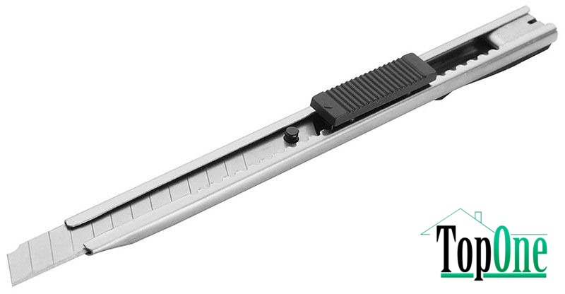Ніж сегментний TOLSEN 9 мм (30005) виготовлений з нержавіючої сталі. Запакований у картонну упаковку. Застосовується при проведенні будівельних та оздоблювальних робіт та призначений для різання паперу, картону, тонкого пластику тощо. Ніж оснащений фіксуючим механізмом, що дозволяє варіювати величину висування леза.