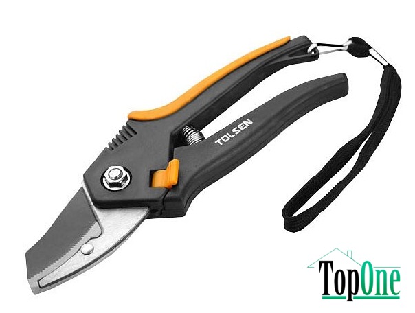 Секатор TOLSEN 200 мм скошений PP/TPR рукоятки (31020) призначений для обрізання виноградної лози, квітів, молодих пагонів та зелених гілок.