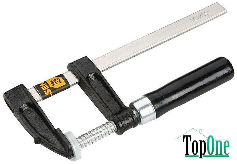 Струбцина TOLSEN столярна тип F, 50 х 150 мм (10123) – володіє різьбовим стрижнем і нікельованою основою. Ручка – із дерева. Упаковка – наклейка.