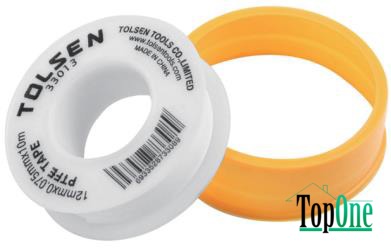 ФУМ-стрічка TOLSEN 12 х 0,075 мм, 10м (33013) - Фторопластовий ущільнювальний матеріал, що використовується як витратний матеріал у господарських та монтажних роботах. Довжина – 10 м.