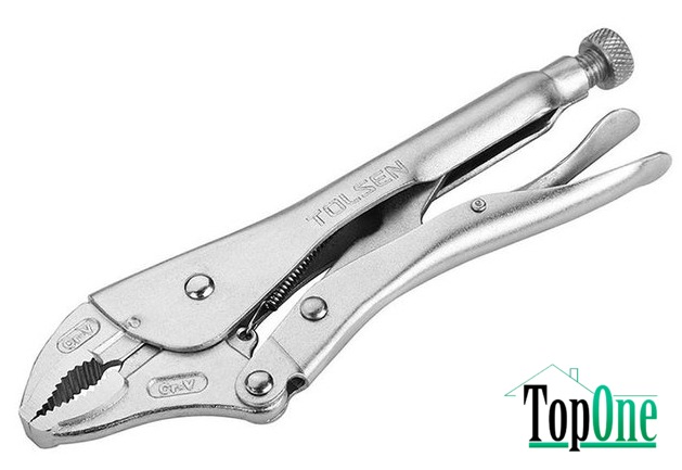 Кліщі затискні Tolsen Профі напівкруглі 255 мм (10049) – надійний і міцний інструмент, виготовлений з хромованадієвої сталі. Має нікельоване покриття. Зручно лягають у руці та витримують великі навантаження. Оснащені настроювальним гвинтом та важелем розблокування, що дозволяє проводити роботи однією рукою.