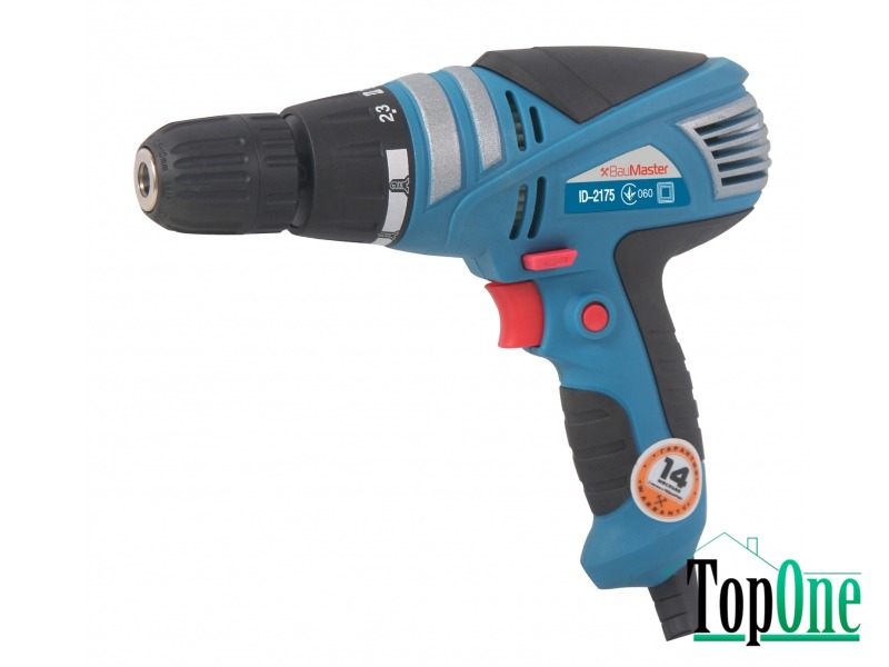 BauMaster ID-2175 – одношвидкісний мережевий шуруповерт для домашнього застосування. Має гарну ергономіку та невеликі масогабаритні показники, за рахунок чого зручний в експлуатації.