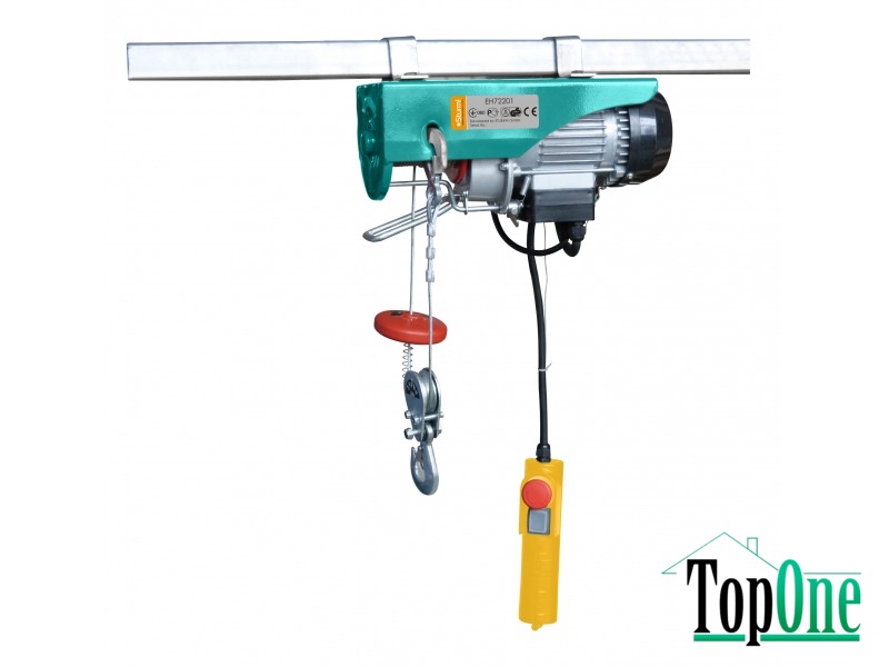 Електрична лебідка Sturm EH72201 призначена для вертикального підйому різних вантажів, але іноді може використовуватися для переміщення важких предметів по горизонталі. Електрична лебідка Sturm EH72201 має електричний двигун потужністю 540 Вт, висоту підйому 12 метрів і може піднімати чи опускати вантаж до 200 кілограм. Також є можливість встановити спеціальний блок (входить до комплекту) та скоротивши висоту підйому вдвічі (до 6 метрів) збільшити вантажопідйомність лебідки до 400 кілограм. Має функцію аварійної зупинки та захист від перегріву, а також кабель дистанційного керування довжиною 1,5 метра.