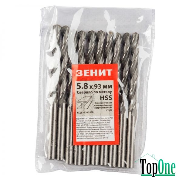 Свердло HSS по металу 5.8 х 93 мм (10шт) Зенит 30300058