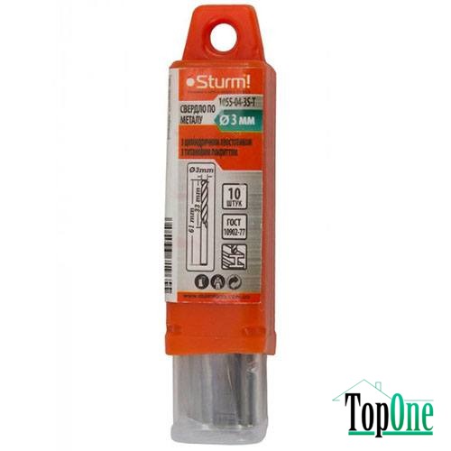 Свердло по металу Sturm 1055-04-3S-T 3,0 мм 10 шт. Поверхня різальної частини має спеціальну загострену кромку, від чого свердло легше входить у метал. Калібруюча частина, що містить спеціальні канавки для відведення стружки. Частина, що калібрує, також задає діаметр майбутнього отвору і полірує краї.