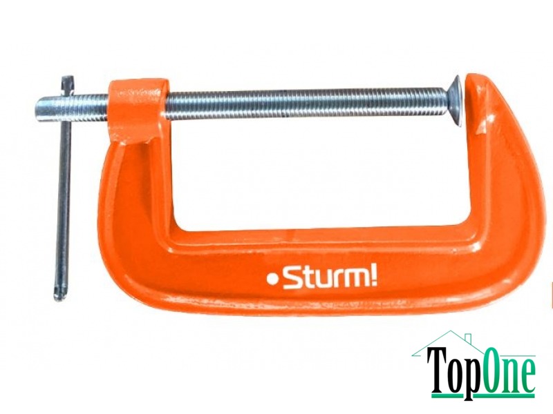 Струбцина Sturm 1078-01-100, тип «G», 100 мм - інструмент із затискним механізмом, який служить для фіксації деталей при обробці або в процесі сушіння склеєних виробів. Завдяки струбціні можна закріпити об'єкт нерухомо, що зробить роботу максимально ефективною. Довжина її робочої частини 100 мм. Тривалий термін служби забезпечує антикорозійне покриття інструменту. Рухлива частина деталі регулюється оцинкованим гвинтом.