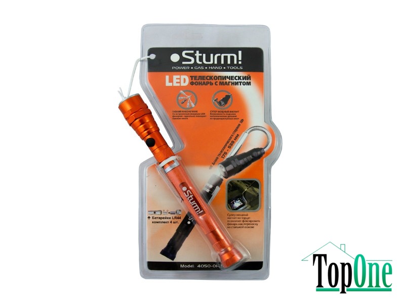 Sturm 4050-01-2O - Телескопічний LED ліхтар із двома магнітами.