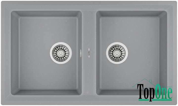 Прямокутна мийка для кухні врізна Teka STONE 90 B-TG 2B (115260007) сірий металік з теграніта, з двома чашами без крила.