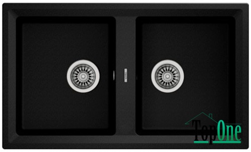 Прямокутна мийка для кухні врізна Teka STONE 90 B-TG 2B (115260003) чорний металік з теграніта, з двома чашами без крила.