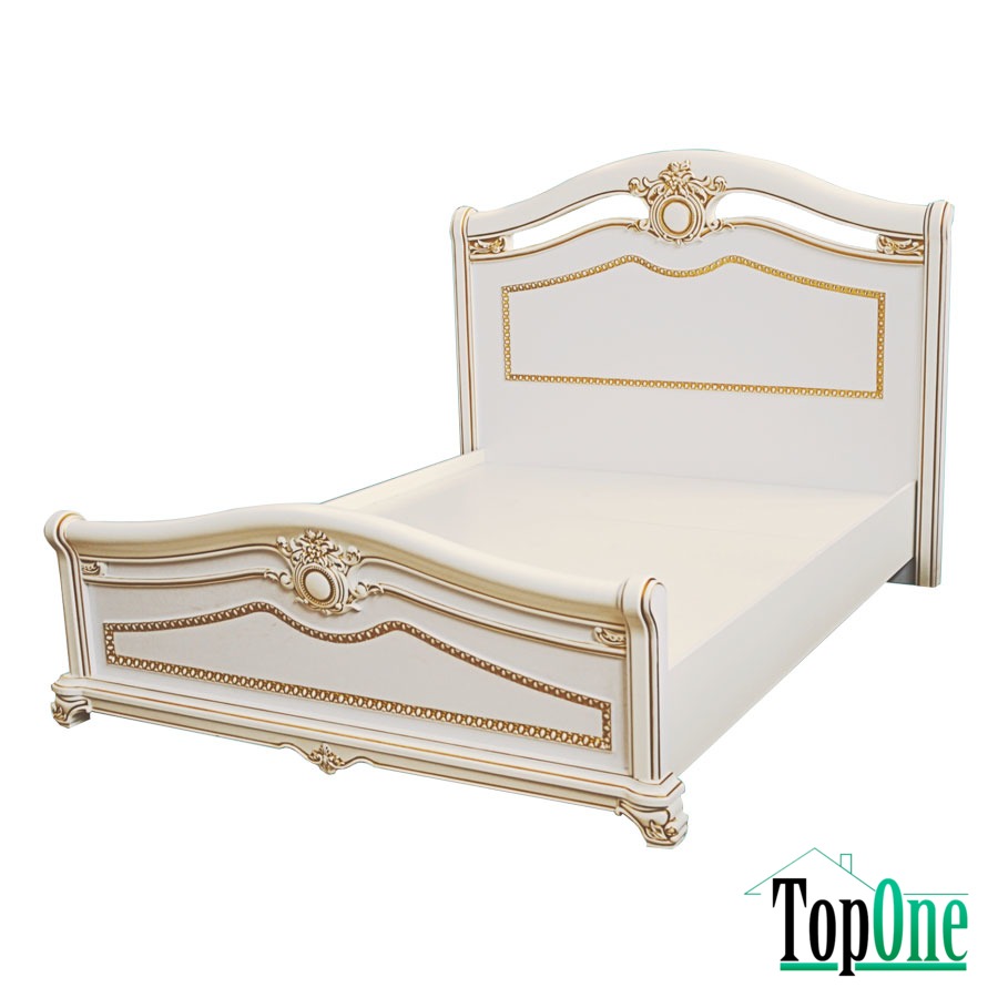 Кровать двуспальная "Эмра" изготовлена из качественного МДФ материала. Кровать выполнена в историческом стиле с позолочёнными элементами декора. Она гармонично дополнит интерьер роскоши и богатства. Механизм трансформации у этой модели отсутствует, каркас корпуса изготовлен из ДСП, благодаря этому он выдерживает даже большую нагрузку. Ортопедический матрас приобретается отдельно, его размер соответствует размеру спального места кровати.