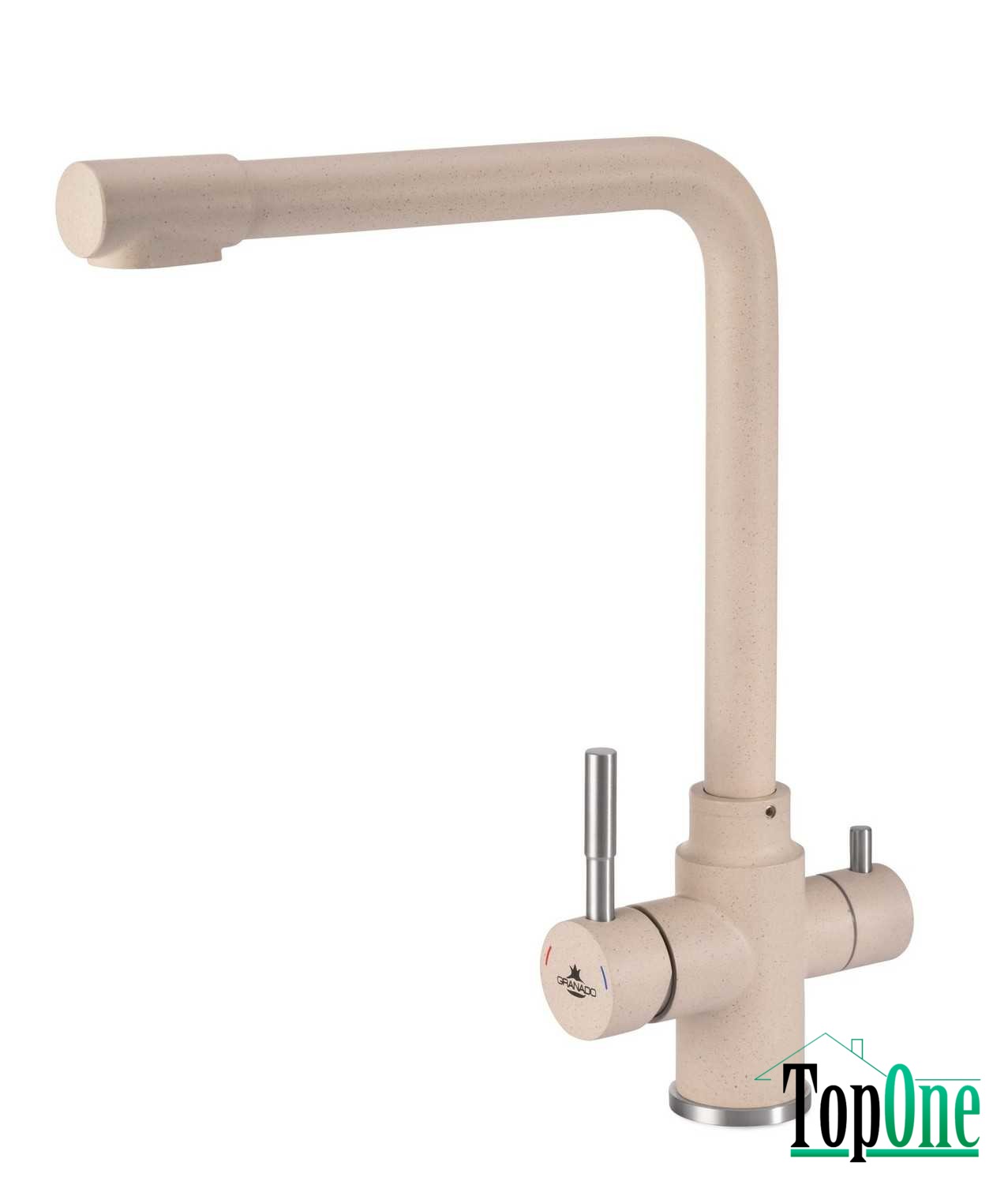 Змішувач для мийки GRANADO Badalona – функціональне рішення для сучасної кухні. Висота 33 см дозволяє безпроблемно помити габаритний посуд. Вода не забризкує ані стіну, ані сушильне крило мийки, ані підлогу. Поворотний змішувач забезпечує можливість комфортно користуватися мийкою з двома чашами.