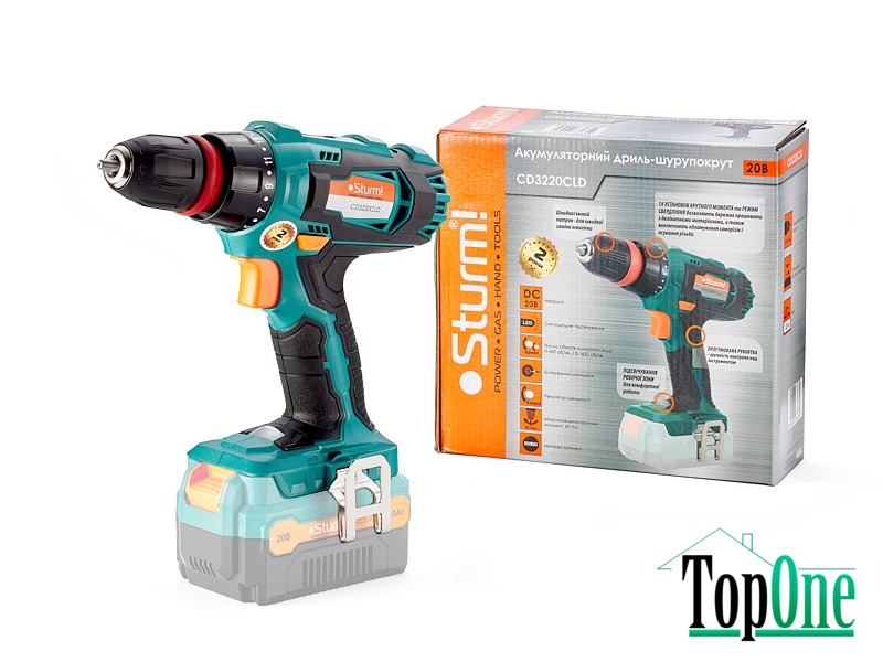 Sturm CD3220CLD - Могутній, акумуляторний 20В двошвидкісний шуруповерт з лінійки інструменту Sturm під єдину акумуляторну платформу. Від базового Sturm CD3220CL ця модель відрізняється наявністю змінного патрона. Крім відмінної ергономіки та сучасного стильного дизайну, модель має гарні технічні характеристики та функціонал. Завдяки потужному електромотору і планетарному редуктору підвищеної міцності, шуруповерт демонструє високі показники по моменту, що крутить (40 Нм) - це дає можливість використовувати інструмент у тому числі і для робіт з кріпленням великої довжини. Додатковий комфорт для користувача забезпечують: функція блокування валу шпинделя, електронне гальмо вибігу двигуна, швидкозатискний однофтовий патрон, LED підсвічування робочої зони.