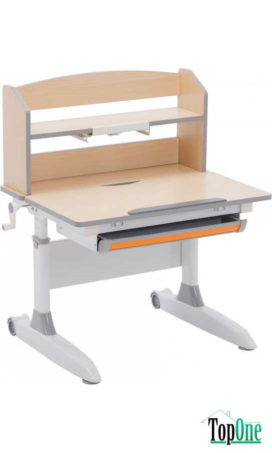 Парта GT DS-1501 оснащена надбудовою з полками, де дитина зможе розмістити, наприклад, підручники, зошити, настільну лампу. У моделі передбачено зручний висувний ящик з роздільниками, де можна зберігати канцелярське приладдя та інші речі. Висоту стільниці можна відрегулювати, скориставшись поворотним важелем з лівого боку столу.