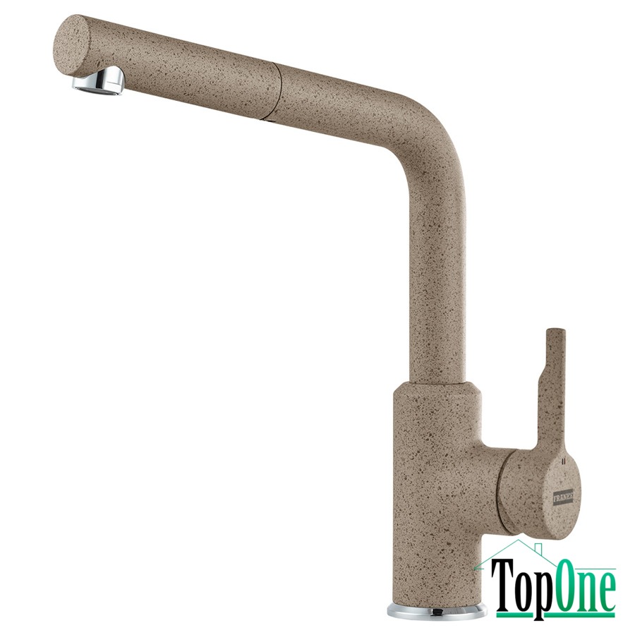 Врезной однорычажный кухонный смеситель Franke Urban с выдвижным шлангом (160 см), рычагом сбоку и многоуровневым аэратором.