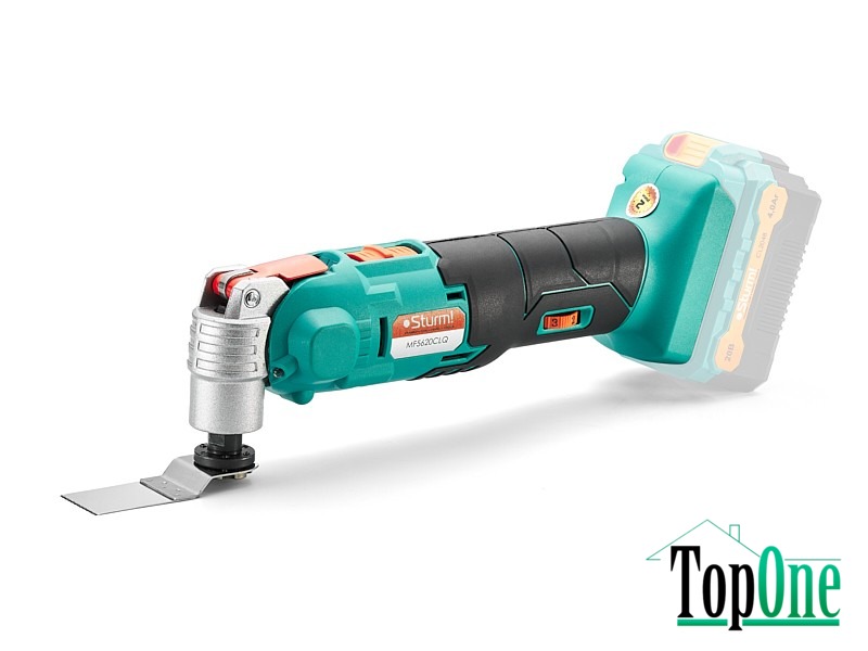 Sturm MF5620CLQ – мультифункціональний реноватор із лінійки інструменту Sturm під єдину акумуляторну платформу – надійний помічник при ремонтних та монтажних роботах. Буде однаково корисним як для професійного, так і домашнього застосування. Інструмент здатний виконувати широкий спектр завдань з різання, шліфування, полірування різних матеріалів, включаючи дерево, метал, пластик, кераміку. Компактні габарити реноватора, а також відсутність прив'язки до електромережі дозволяють його впевнене використання в умовах обмеженого доступу. Корпус пристрою виконаний із міцного пластику та має гумові накладки для надійності хвату. Модель оснащена 20 В електромотором, який забезпечує високу ефективність роботи з оснащенням різного призначення. Передбачена функція регулювання обертів у широкому діапазоні від 5500 до 20000 об/хв, що допомагає підібрати оптимальний режим роботи в залежності від оснастки, що використовується, і оброблюваного матеріалу. Завдяки наявності у моделі швидкозатискного механізму досягається легкість і простота зміни оснастки. Зручність використання в умовах недостатнього освітлення забезпечує ефективне підсвічування LED робочої зони.