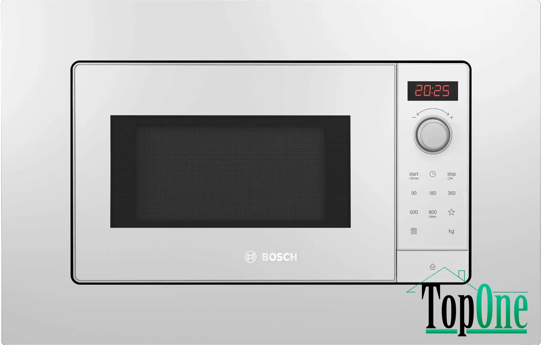 Вбудована мікрохвильова піч BOSCH BFL623MW3 лаконічного дизайну та білого кольору призначена для комфортного підігріву та приготування їжі, а також швидкого розморожування продуктів. Об'єм приладу складає 20 літрів. Він розроблений з емалевим покриттям внутрішніх стін, не піддається корозії, не дряпається і гарантує тривалий термін служби. Дверцята пристрою відкриваються при натисканні кнопки, а наявність столика, що обертається, діаметром 270 мм, забезпечує рівномірне приготування, підігрів або розморожування їжі. Потужність НВЧ-випромінювання 800Вт та регулюється 5 рівнями. Встановлений електронний таймер дозволяє налаштувати потрібний час приготування страви, після якої звучить сигнал. Вбудована мікрохвильова піч BOSCH BFL623MW3 гарантує приготування ароматних та апетитних страв.