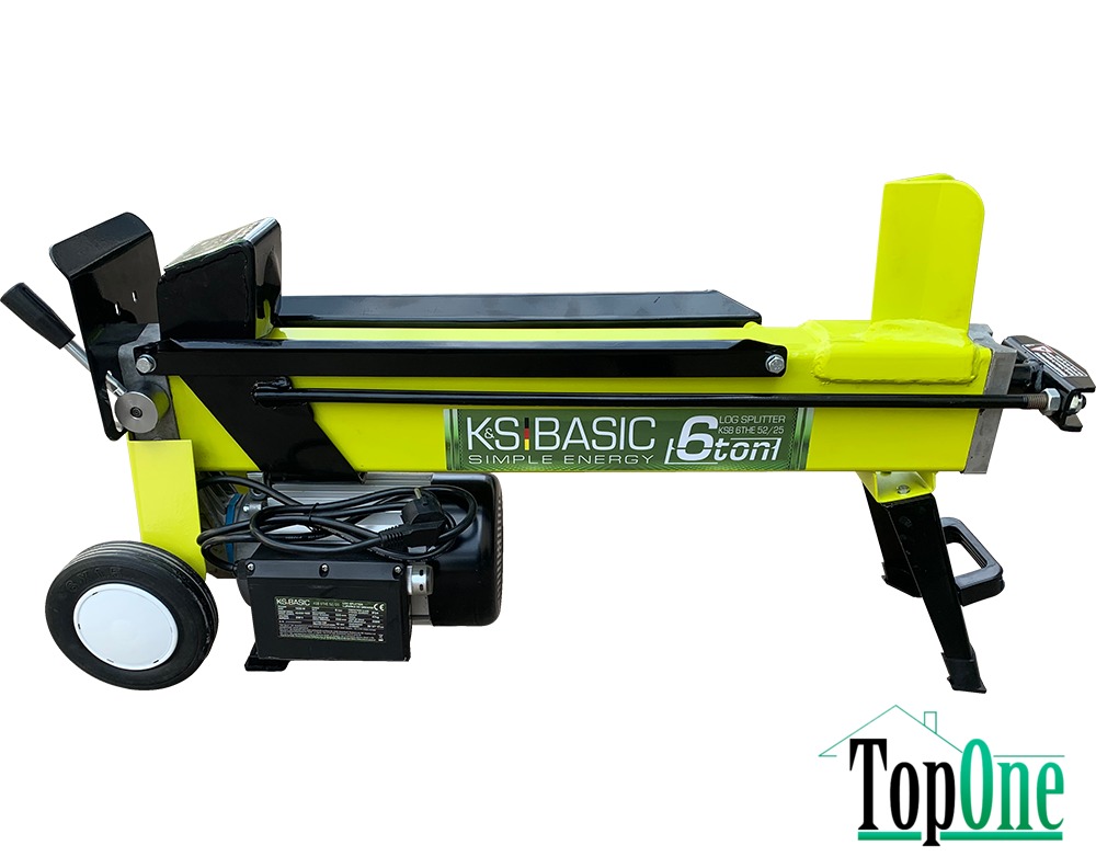 Дровокол Konner&Sohnen BASIC KSB 6THE 52/25 створений на основі електричного однофазного двигуна (220В) потужністю 1600 Вт. Пристрій призначений для роботи в горизонтальному положенні та має гідравлічний привід. Час розколювання поліна складає всього 10 секунд при силі дії штовхача на чурку в 6 тонн. Максимально можливі габарити перероблюваних полін обмежені 52 см за довжиною та 25 см діаметром поперечного зрізу. Маса готової для роботи установки 47 кілограм.