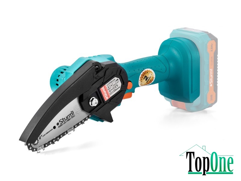 Sturm CC9920CLM - 20В акумуляторна суперкомпактна ланцюгова пилка з лінійки інструменту Sturm під єдину акумуляторну платформу. Головна особливість моделі: мінімальні габарити, оскільки інструмент розрахований під хват однією рукою, має невелику вагу та максимально простий у використанні. Ідеально підійде для обрізання гілок невеликого діаметру та заготівлі дрібних дров для багаття або розпалювання печі. Невеликі габарити та відсутність прив'язки до електромережі забезпечують зручність при висотних роботах, а низький рівень шуму гарантує комфорт для користувача. Інструмент оснащений LED підсвічуванням робочої зони та захистом від випадкового пуску.