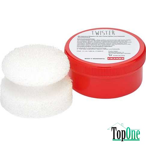 Засіб для чищення стійких забруднень з мийок з нержавіючої сталі призначений для інтенсивного миття сильних плям. Формула засобу містить компоненти, які ефективно усувають забруднення. Не призначений для миття мийок з Фраграніту та Тектонайту, оскільки залишає білі сліди на поверхні. Губку, яка йде в комплекті, змочують, потім круговими рухами розтирають по поверхні твердого засобу і пінкою, що утворилась, змивають забруднення.