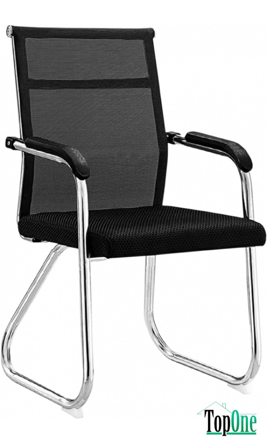 Спинка крісла має міцний металевий каркас та обшита зносостійкою тканиною-сіткою. Оббивка має щільний натяг, за рахунок чого тіло отримує надійну підтримку спини. Це зручно, якщо знаходишся тривалий час у такому кріслі. Конструкція основи є звичайними металевими закругленими ніжками.