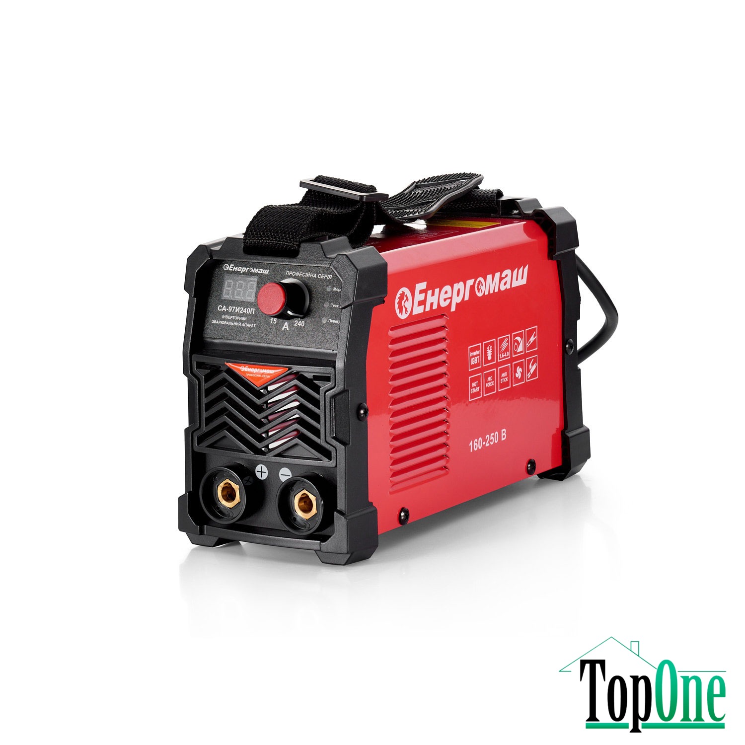 Зварювальний інвертор Енергомаш СА-97І240П є потужним інструментом для побутового використання. Апарат має широкий діапазон зварювання і працює з електродами товщиною від 1,6-4 мм. Пристрій відрізняються невеликою вагою та зручними габаритами, водночас демонструючи високу продуктивність із робочим циклом 60%. Діапазон зварювального струму складає від 15 до 240 А. Точність налаштування струму контролюється за допомогою цифрового дисплея. Експлуатувати інвертор рекомендується за температури -10 - 40 С.
