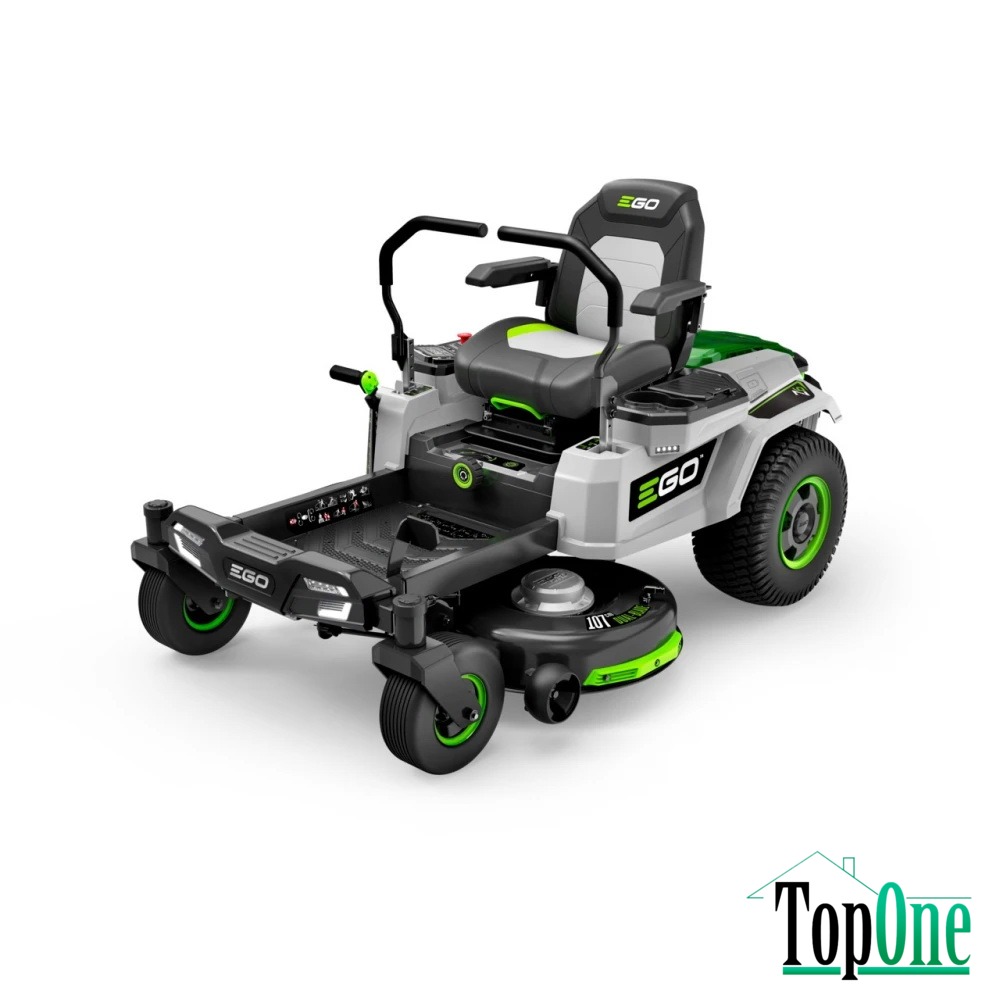 EGO POWER+ Z6 ZT4201E-L - потужний акумуляторний райдер з професійного сегмента обладнання ТМ EGO. Оснащується відразу 4 новітніми безщітковими двигунами, завдяки чому має потужність еквівалентну 22 к.с. Ширина захоплення деки становить 42" або 106,7 см. Площа косіння при використанні 4 акумуляторів EGO 56V ARC Lithium™ ємністю 10 А*год кожен складає 8000 кв.м, що значно перевершує найближчі аналоги. При використанні ж максимальних 6 акумуляторів площа вже складе 12000 кв.м. Висота косіння регулюється ступінчасто від 38 мм до 114 мм. Швидкість косіння залежно від густоти трави та регулюється автоматично. Швидкість руху райдера регулюється від 4,8 км/год до 12,8 км/год.
