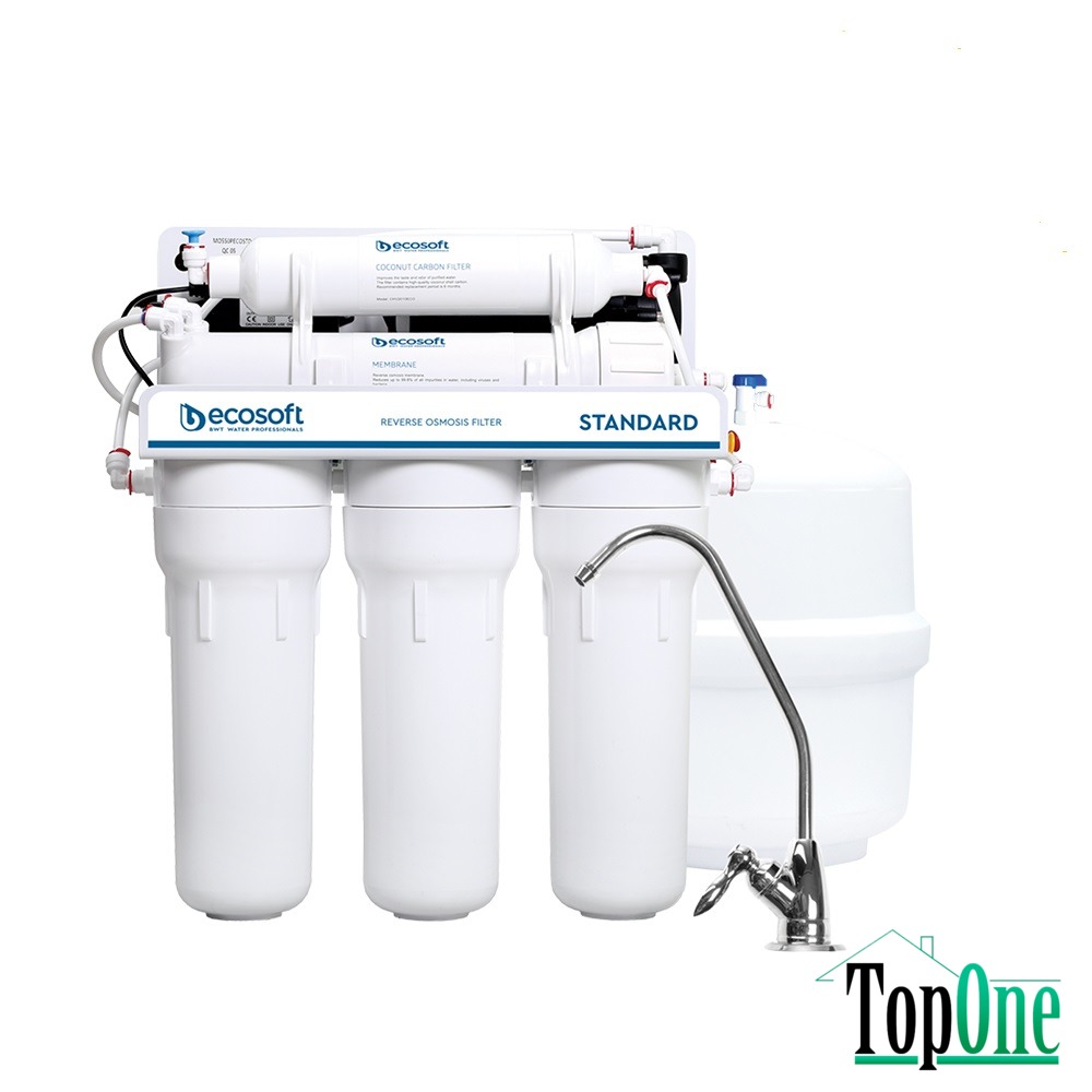 Фільтр зворотного осмосу Ecosoft Standard з помпою призначений для очищення води на молекулярному рівні в будинках та квартирах зі слабким напором в трубопроводі. Продуктивність фільтра — 8 л/год. Фільтр очищає воду від 99,8% забруднень, включно з вірусами та бактеріями.