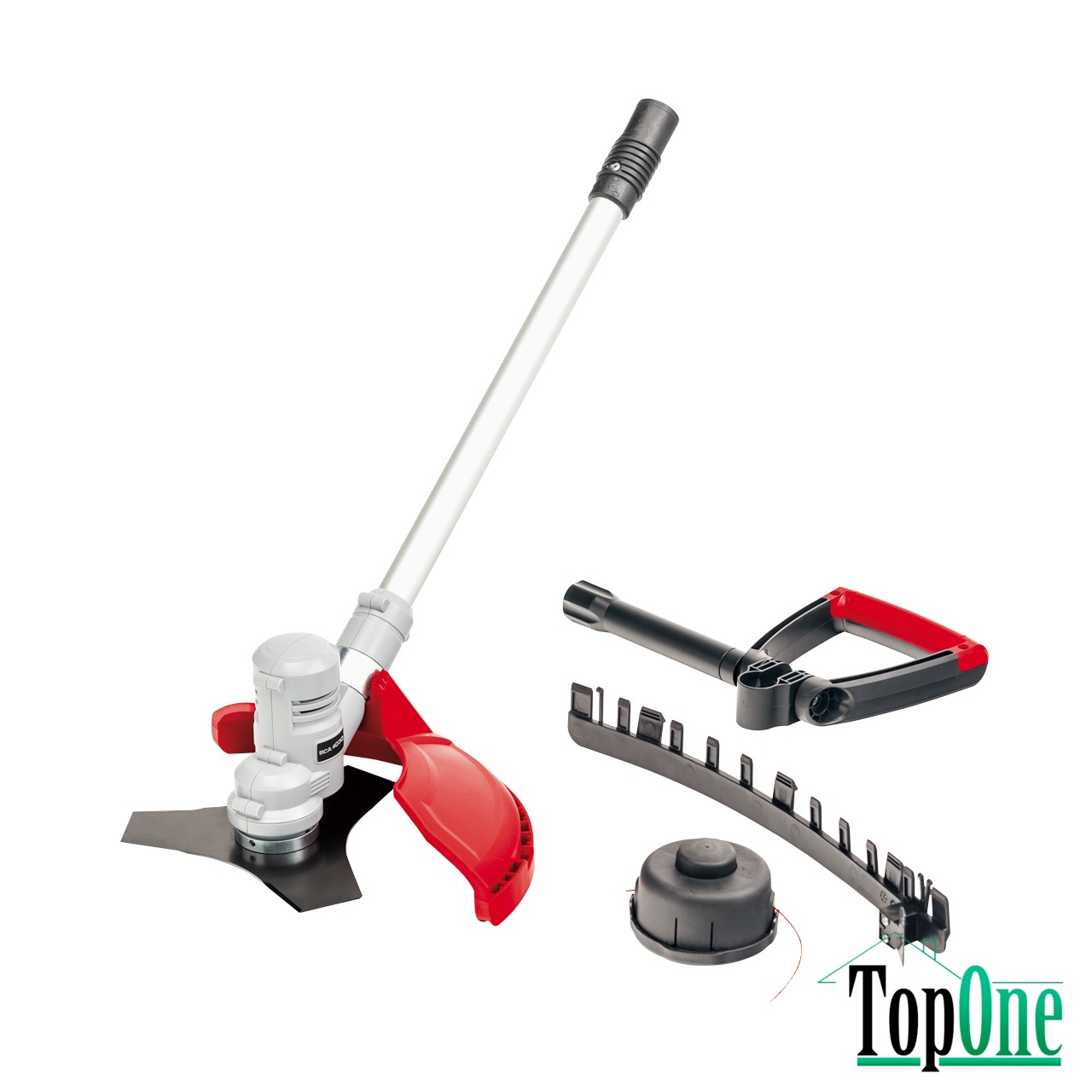 Абсолютна багатосторонність завдяки змінній ріжучій головці: Металевий ніж довжиною 23 см забезпечить легке просування вперед, навіть через густу тверду траву та переплетення коріння. Але за одну мить цей ніж можна замінити на головку з ріжучою ліскою для акуратної підрізки з шириною різу до 30 см. Оптимальну довжину ріжучої волосіні можна налаштувати автоматично, прямо під час косіння, для чого досить короткого притискання ріжучої головки до ґрунту.