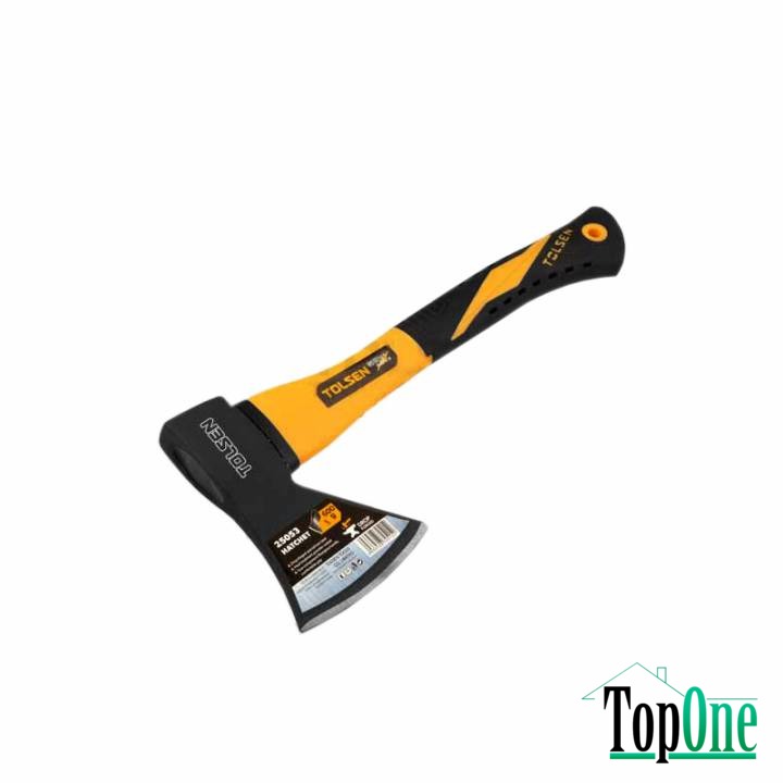 Сокира Tolsen – надійний інструмент для роботи в саду, городі чи для інших робіт, пов’язаних з обробкою деревини. Лезо сокири виготовлено з вуглецевої сталі та покрито чорною фарбою, що надає йому високу міцність та стійкість до зношування. Невелика вага та ручка зі скловолокна гарантує комфортне користування та транспортування інструменту.